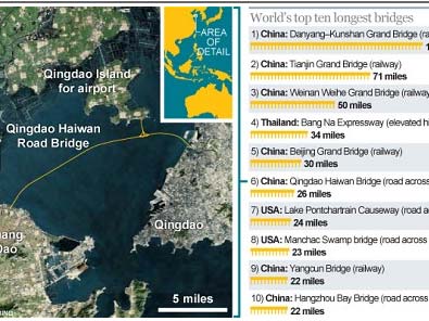 اين سازه عظيم مركز شهر بندري رو به رشد كينگدائو در شرق چين را به حومه هوانگدو مرتبط مي كند.
